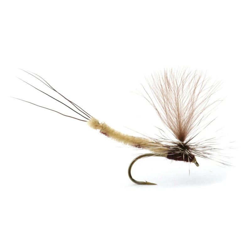 Danica Dun, Trockenfliege für Forellen und Äschen, funktioniert gut im Frühsommer und im Hochsommer. Funktioniert gut in kleineren Seen und Flüssen. Hergestellt, um eine Eintagsfliege zu imitieren.