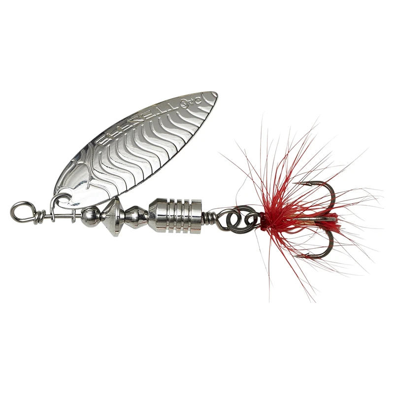 Diese Spinner sind mit einem UV-aktiven Feder-Dreizack ausgestattet, der für die Fische sehr gut sichtbar ist und gleichzeitig der Anhiebpunkt für die Fische ist, was die Hookup-Rate stark erhöht. Erhältlich in #2, 4g, #3, 6g und #4, 10g.