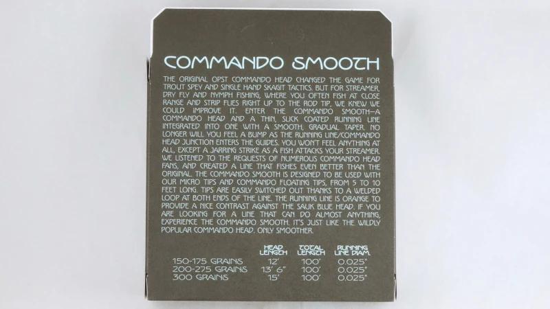 Commando Smooth ist eine Schnur mit integrierter, dünn beschichteter Laufschnur und Butt, perfekt für alle, die keine separate Schießschnur verwenden und trotzdem einen Commando Head Butt haben wollen. Seit Ed Wards Commando Head vor etwas mehr als drei Jahren auf den Markt kam, hat es sich zu einem unserer beliebtesten Produkte entwickelt. Das ist keine wirkliche Überraschung, denn er hat es den Leuten ermöglicht, viel größere Fliegen mit leichteren Ruten an mehr Orten zu fischen, als sie jemals für möglich gehalten hätten. Viele Leute, vor allem Forellenfischer, haben sich jedoch gewünscht, dass es keine störende, klobige Verbindung zwischen dem Commando Head und der laufenden Schnur gibt. Ed Ward hat dieses Problem nun gelöst…Hier kommt die Commando SMOOTH: ein vollständig integriertes System aus Schusskopf und dünner, beschichteter Mono-Laufschnur. Perfekt für das Forellenfischen und für das Angeln auf kurze Distanz. Mit einem Durchmesser von nur 0,635 mm/0,025″ schießt die Laufschnur fast so gut wie Mono, aber sie schwimmt höher und ist für viele leichter zu handhaben. Der Kopf ist der gute alte Commando-Kopf, mit einer nahtlosen Verbindung zur Laufschnur. Es ist eine ziemlich einfache Formel, und eine, die jeden ansprechen wird, der einen originalen Commando-Kopf gekauft hat.